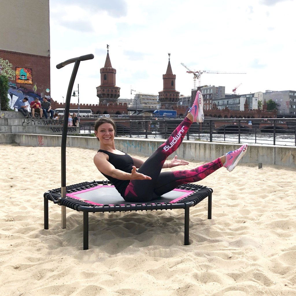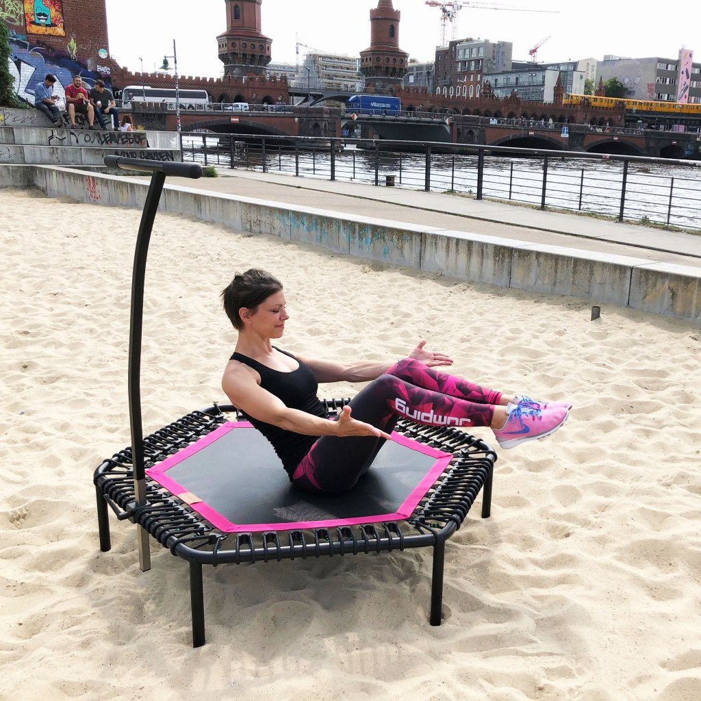 Also schön in die Bretthaltung, den Plank, gehen und die Mitte aktivieren. Vorsicht, nicht den Popo nach oben strecken. Der Rücken bleibt gerade. Und dann schön halten. Bei bellicon JUMPING meets Shadowboxer gibt es auch tolle Plank-Einheiten. Wem das zu anstrengend ist, der kann, wie ich zum Jumpen gehen. Ich finde ja statische Übungen sind echt der Killer. Deshalb erinnere ich mich und meine Crew während des jumpens immer gerne an den aktiven Bauchnabel. Voll in Bewegung. Voll unter Spannung.
